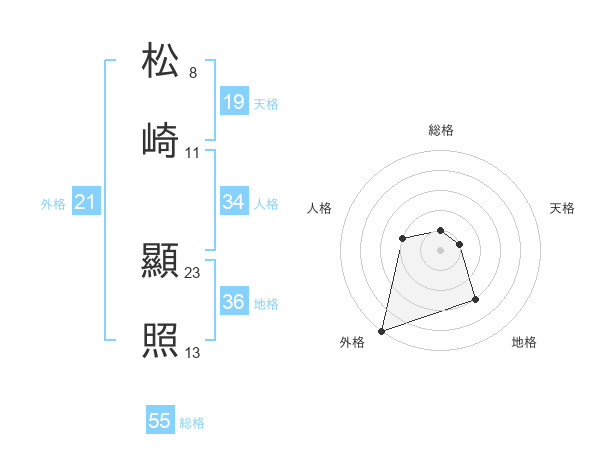 松崎 顯照さんの総格は55画の1点!