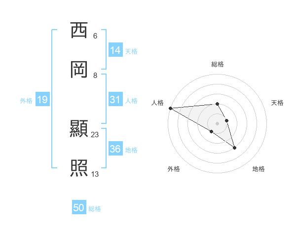 西岡 顯照さんを姓名の画数から五運を鑑定