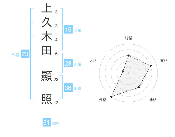 上久木田 顯照さんを姓名の画数から五運を鑑定