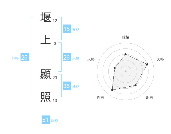 堰上 顯照さんを姓名の画数から五運を鑑定