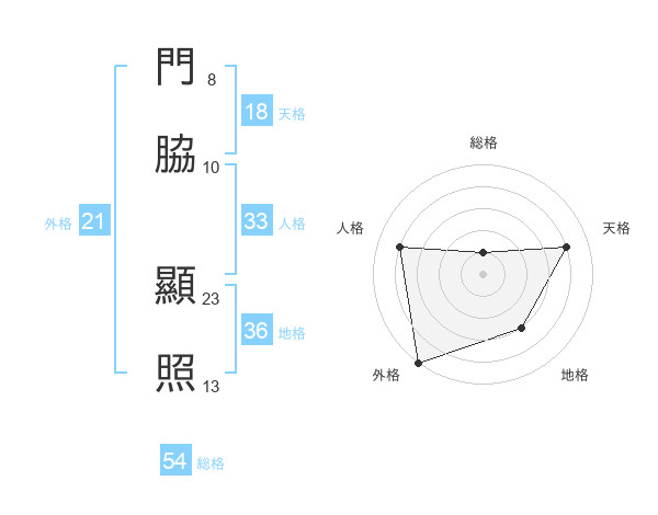 門脇 顯照さんの総格は54画の1点!
