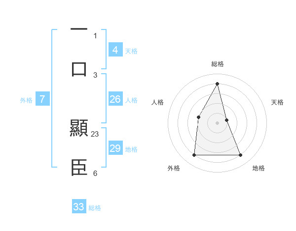 一口 顯臣さんを姓名の画数から五運を鑑定