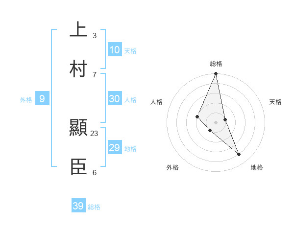 上村 顯臣さんの総格は39画の5点!