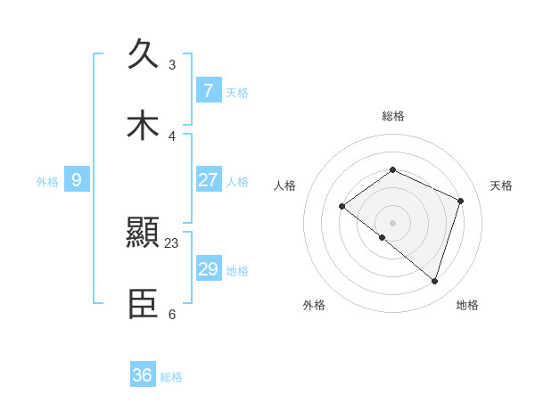 久木 顯臣さんを姓名の画数から五運を鑑定