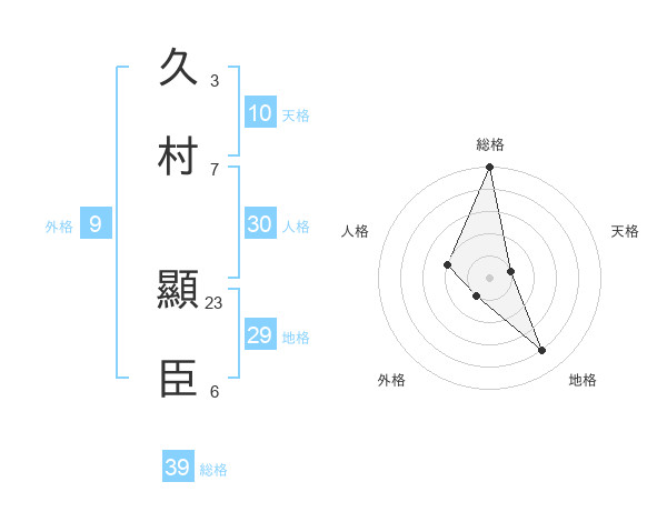 久村 顯臣さんを姓名の画数から五運を鑑定