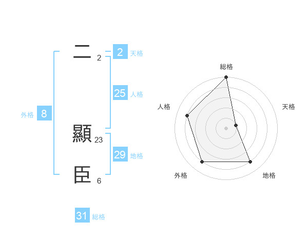 二 顯臣さんの地格は29画の4点!