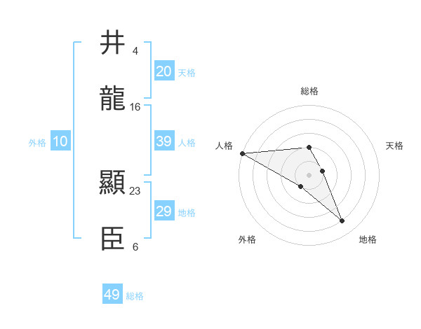井龍 顯臣さんの総格は49画の2点!