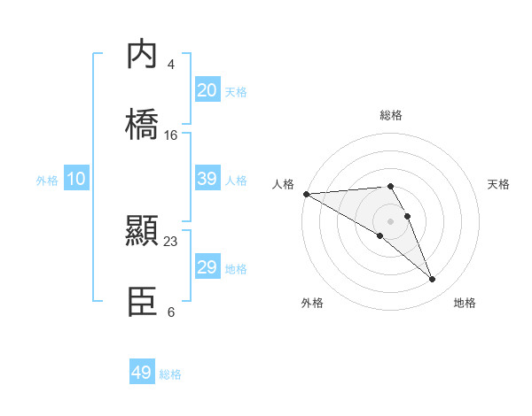 内橋 顯臣さんを姓名の画数から五運を鑑定