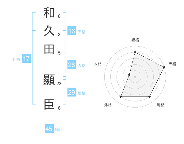 和久田 顯臣さんを姓名の画数から五運を鑑定