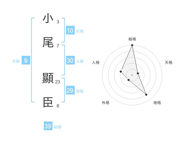 小尾 顯臣さんの総格は39画の5点!
