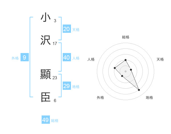 小沢 顯臣さんの天格は20画の1点!