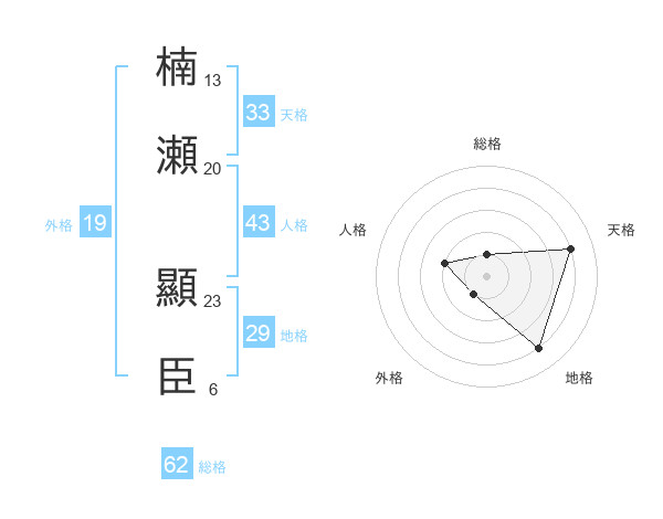 楠瀬 顯臣さんの天格は33画の4点!