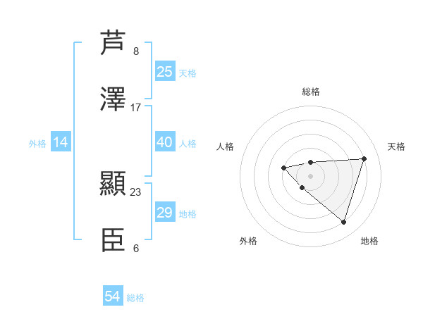 芦澤 顯臣さんの総格は54画の1点!