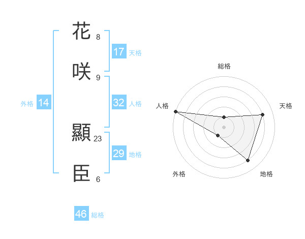 花咲 顯臣さんを姓名の画数から五運を鑑定