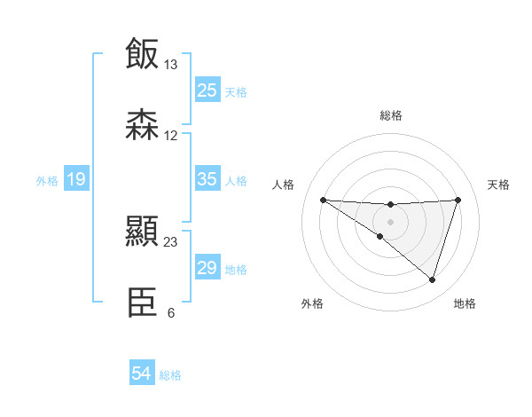 飯森 顯臣さんの総格は54画の1点!
