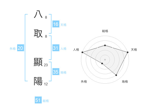 八取 顯陽さんを姓名の画数から五運を鑑定