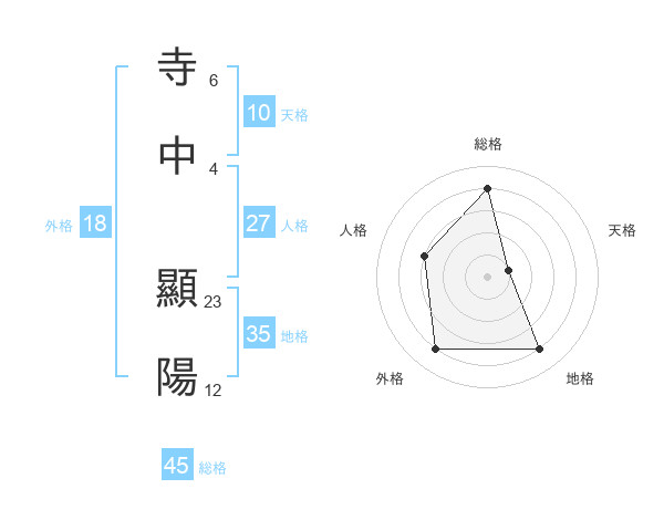 寺中 顯陽さんを姓名の画数から五運を鑑定