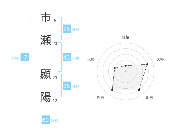 市瀬 顯陽さんを姓名の画数から五運を鑑定