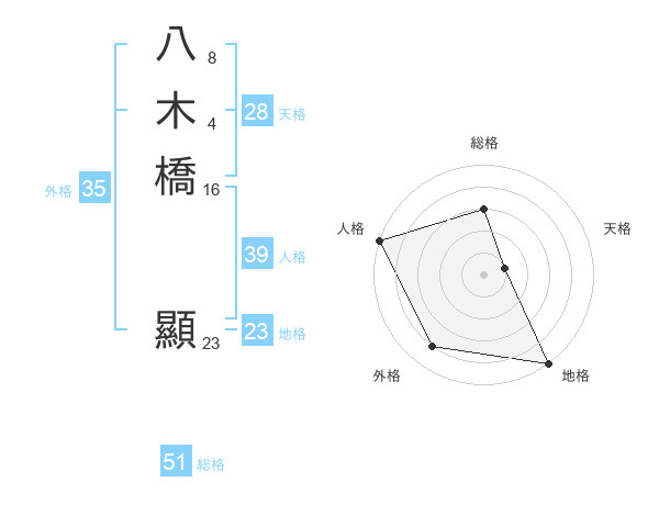 八木橋 顯さんの総格は51画の3点!