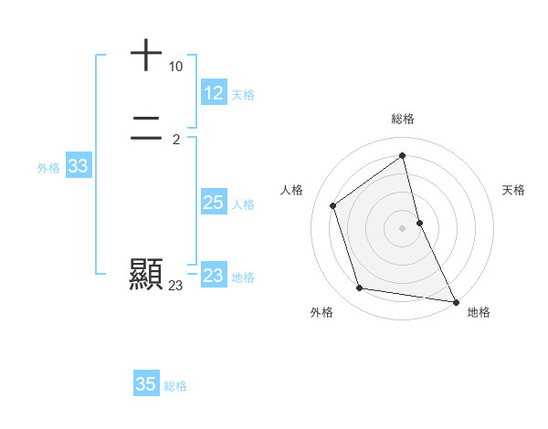 十二 顯さんの総格は35画の4点!