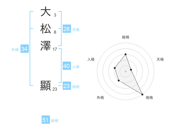大松澤 顯さんの総格は51画の3点!