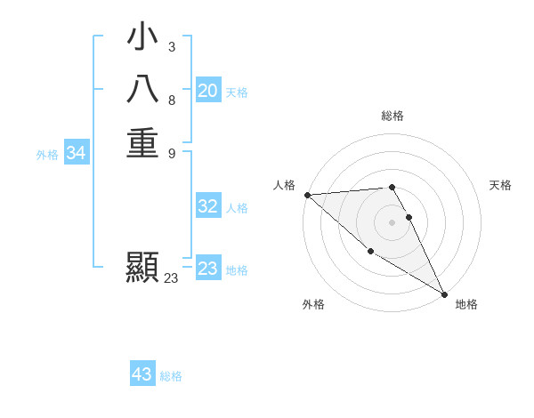小八重 顯さんの外格は34画の2点!