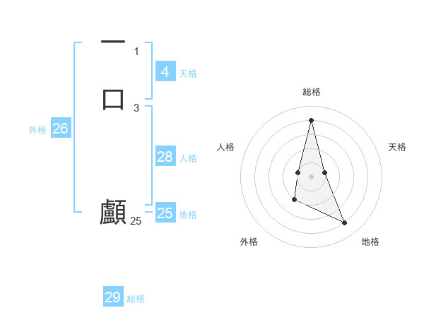 一口 顱さんの総格は29画の4点!