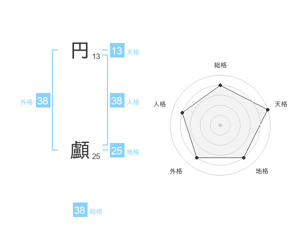 円 顱さんの総格は38画の4点!