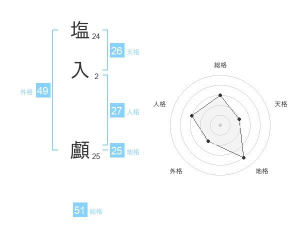 塩入 顱さんの総格は51画の3点!