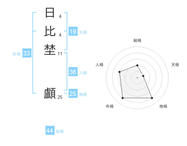 日比埜 顱さんの総格は44画の2点!