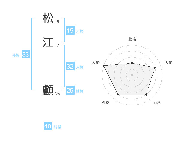 松江 顱さんの総格は40画の2点!