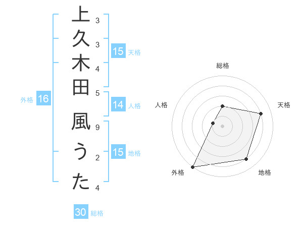 上久木田 風うたさんを姓名の画数から五運を鑑定