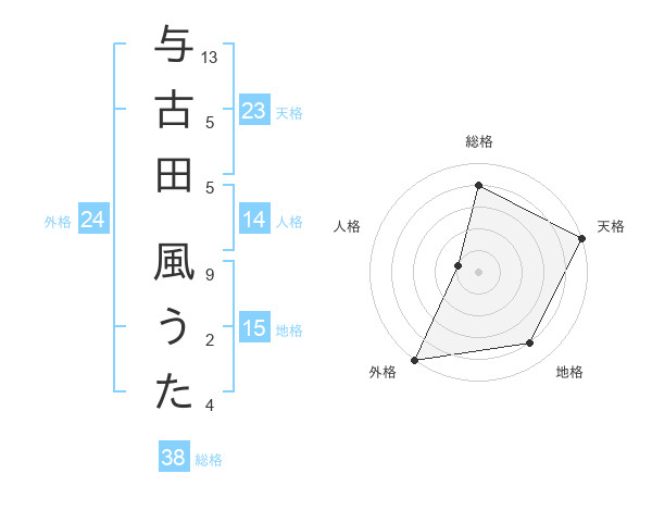 与古田 風うたさんを姓名の画数から五運を鑑定