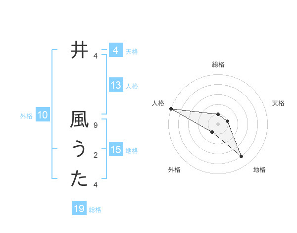 井 風うたさんの地格は15画の4点!