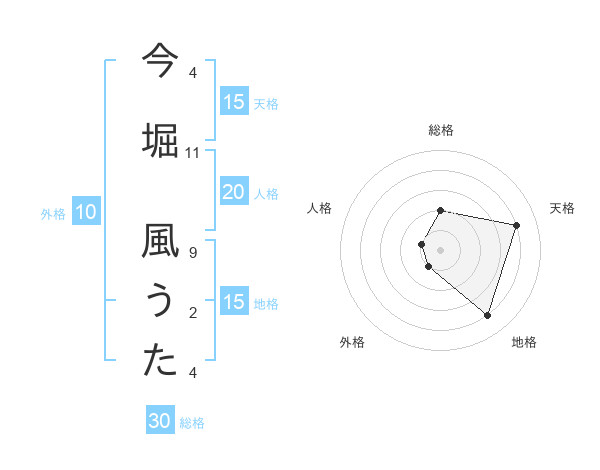 今堀 風うたさんを姓名の画数から五運を鑑定