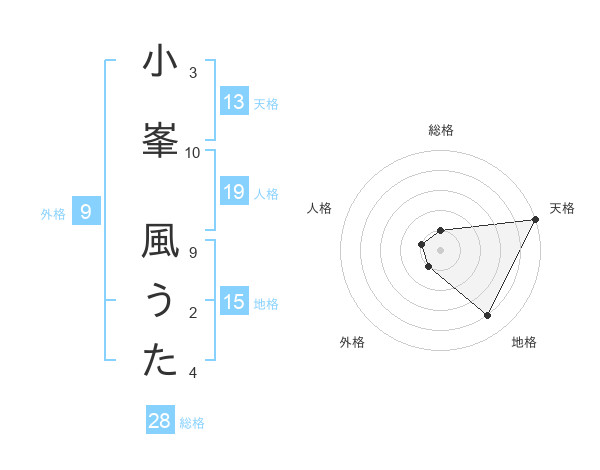 小峯 風うたさんを姓名の画数から五運を鑑定