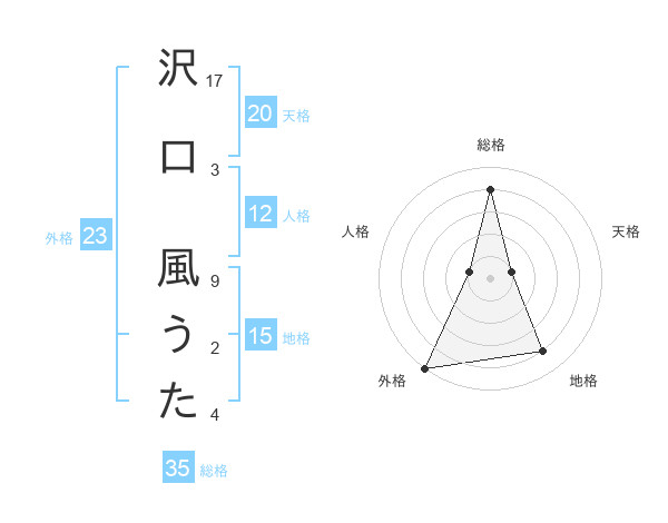 沢口 風うたさんを姓名の画数から五運を鑑定