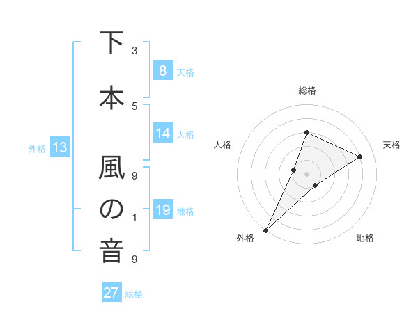 下本 風の音さんの総格は27画の3点!