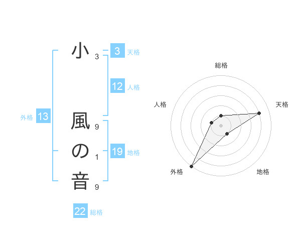 小 風の音さんの総格は22画の1点!