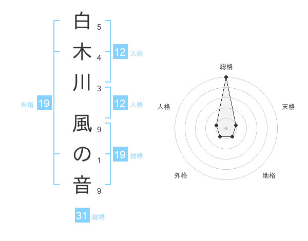 白木川 風の音さんの総格は31画の5点!