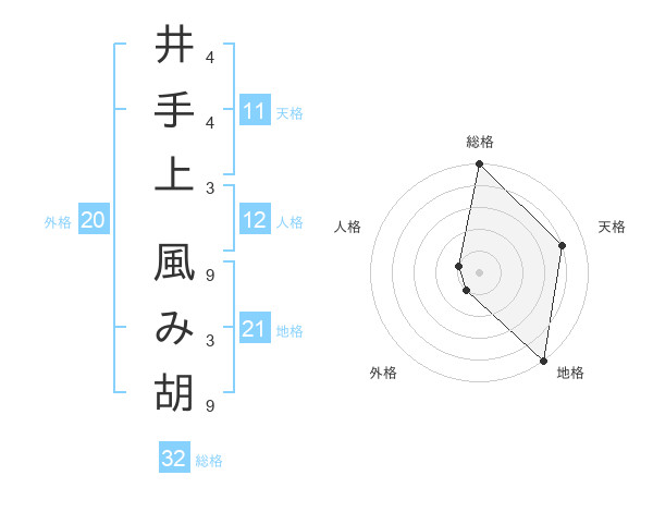 井手上 風み胡さんを姓名の画数から五運を鑑定