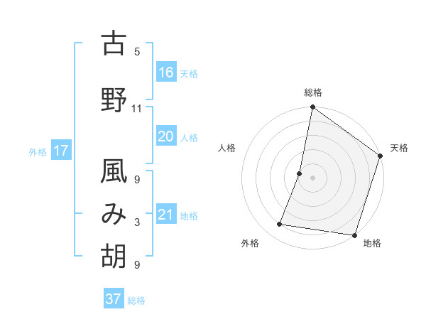 古野 風み胡さんを姓名の画数から五運を鑑定
