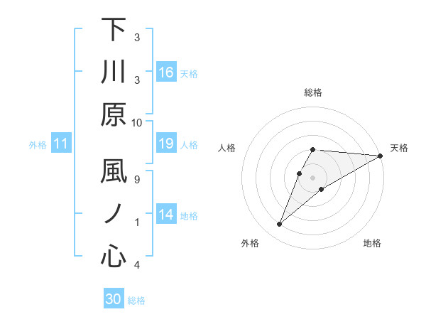 下川原 風ノ心さんを姓名の画数から五運を鑑定