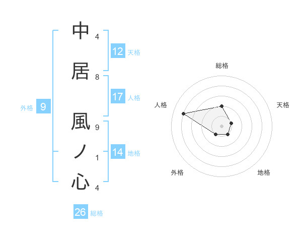 中居 風ノ心さんの総格は26画の2点!