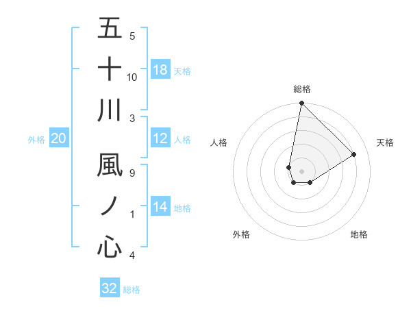 五十川 風ノ心さんの総格は32画の5点!