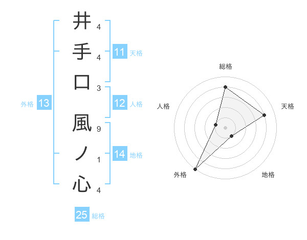 井手口 風ノ心さんを姓名の画数から五運を鑑定