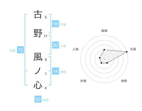 古野 風ノ心さんを姓名の画数から五運を鑑定