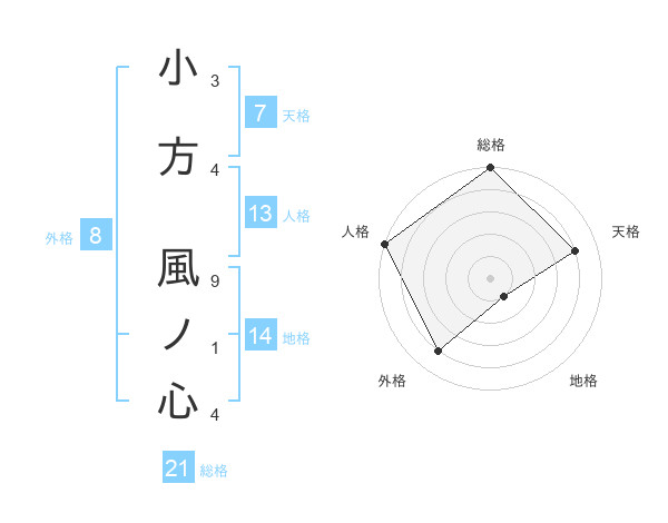 小方 風ノ心さんを姓名の画数から五運を鑑定