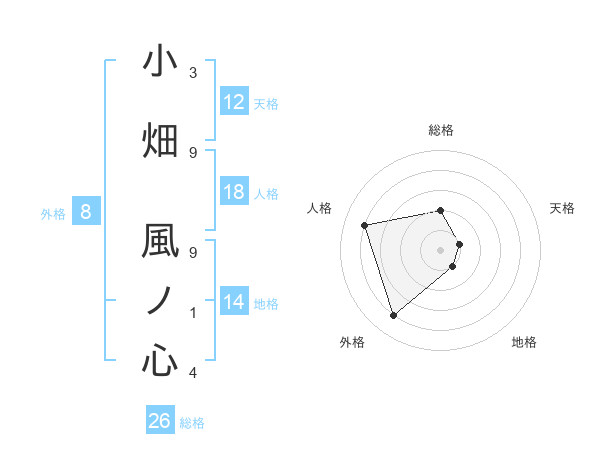小畑 風ノ心さんを姓名の画数から五運を鑑定