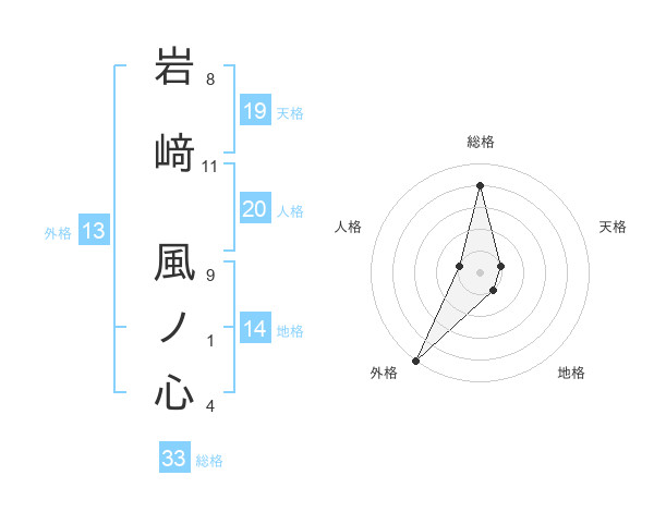 岩﨑 風ノ心さんを姓名の画数から五運を鑑定